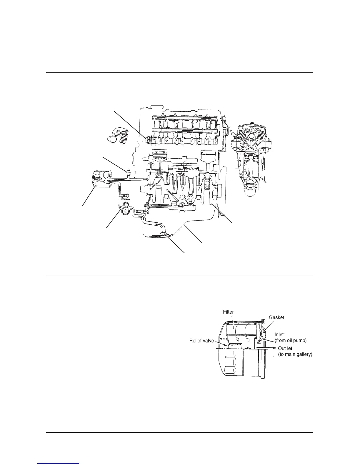 fed to the cylinder blocks and cylinder head.