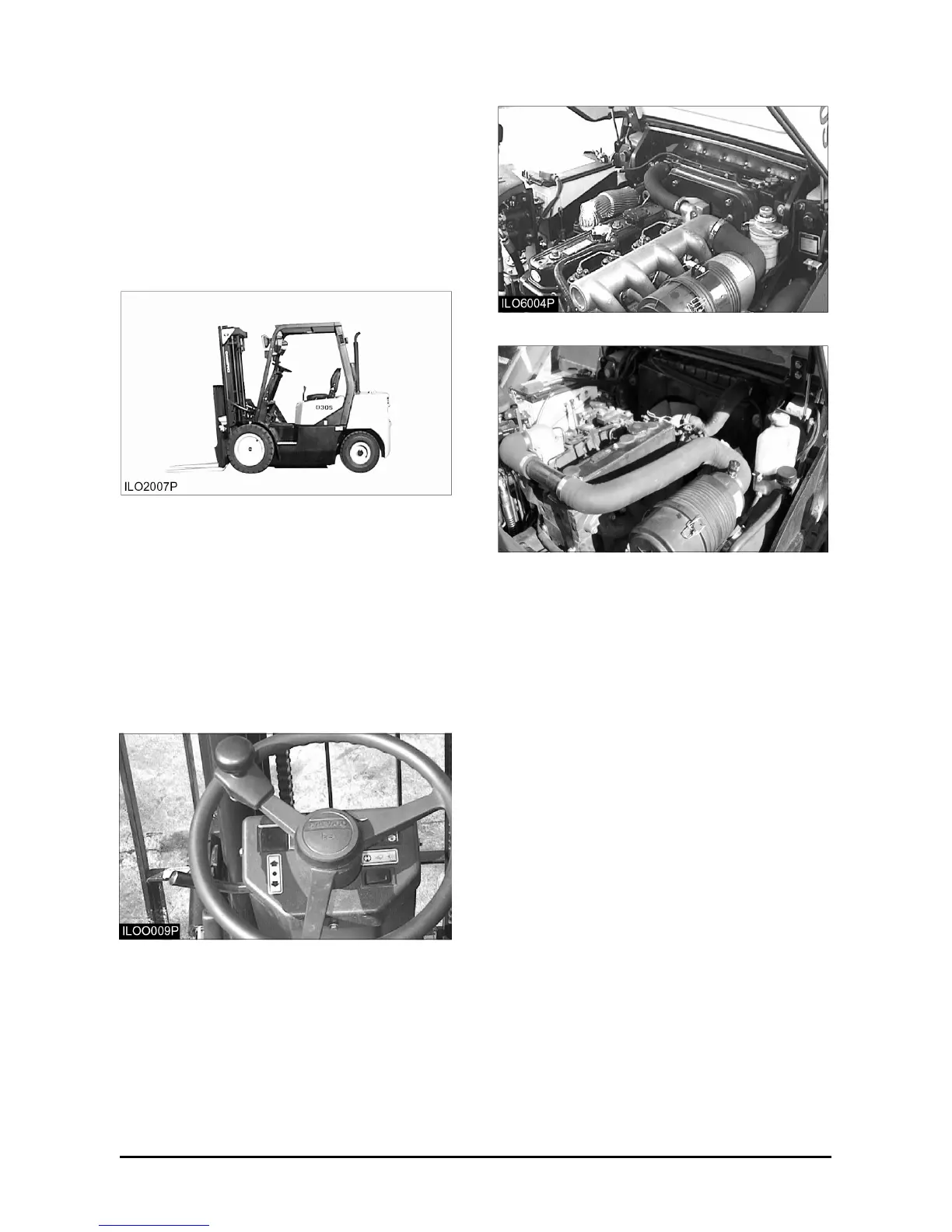 bolts, debris or dirt buildup, fuel, oil or coolant leaks