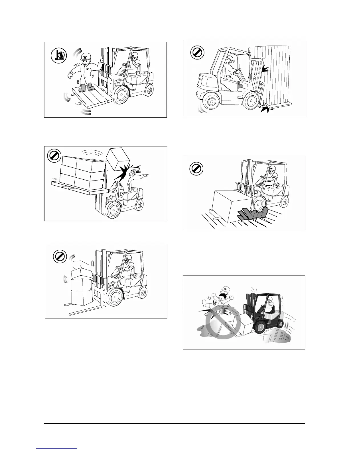Lift trucks are designed to carry loads, not people.