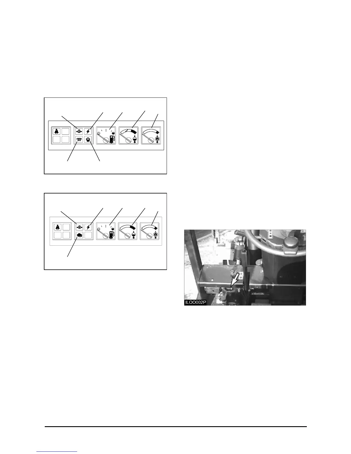 1. The engine oil pressure indicator light (1), will