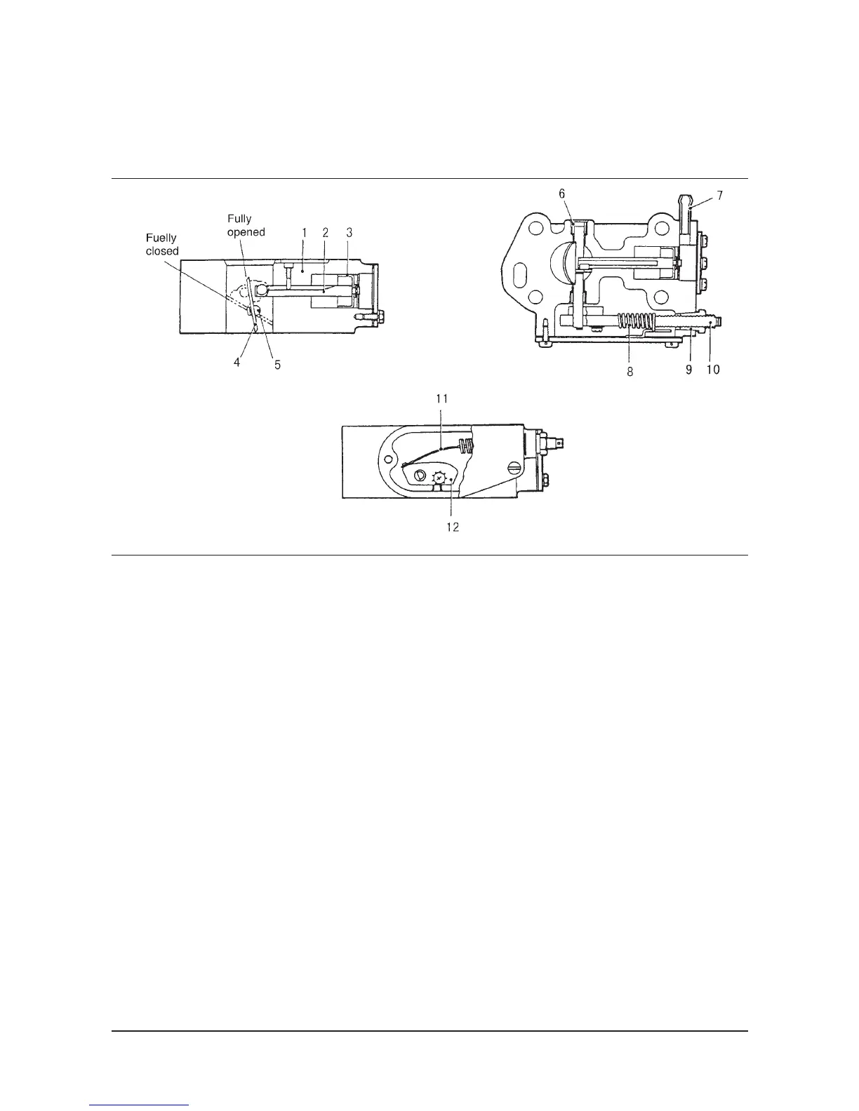 (1) Body. (2) Stabilizer rod. (3) Stabilizer piston. (4) Throttle plate. (5) Throttle plate shaft. (6) Bearing. (7) Nipple. (8) Spring.
