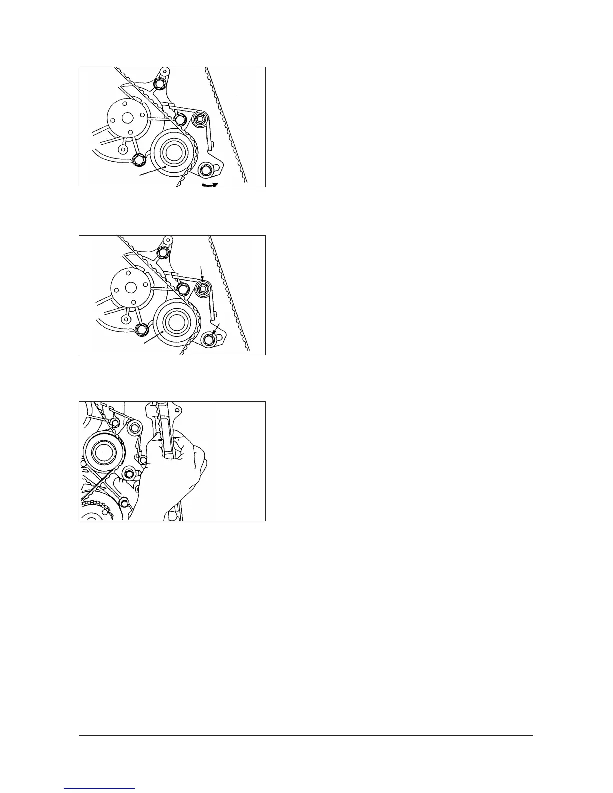 (8) Apply force to the tensioner in the direction shown by