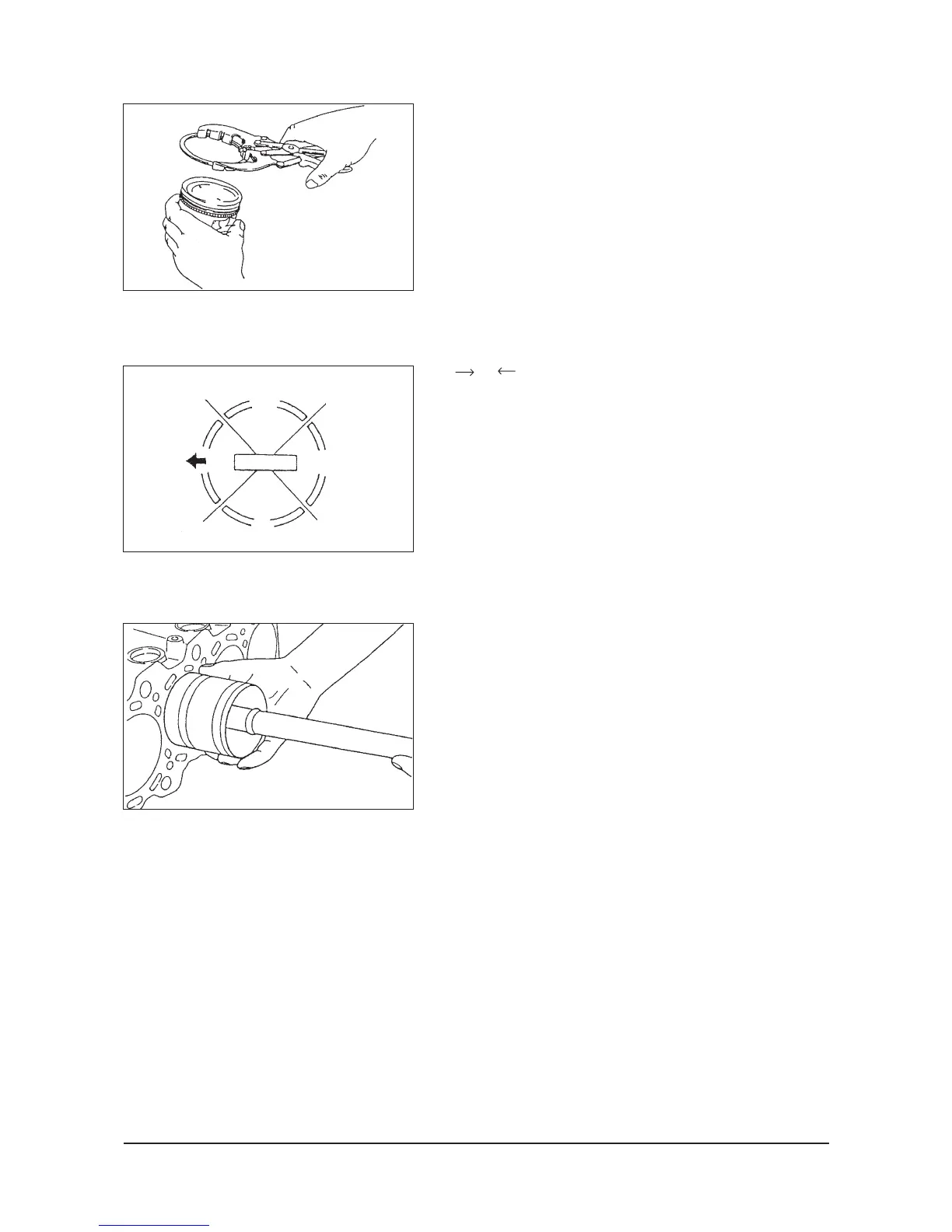 (2) Arrange the piston ring and oil ring gaps (side rail and