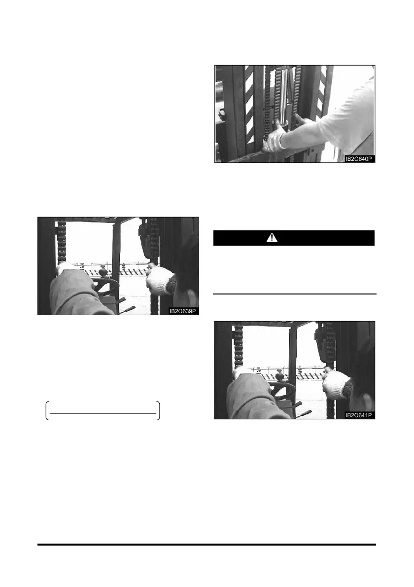 1. Lift the mast and carriage enough for getting tension
