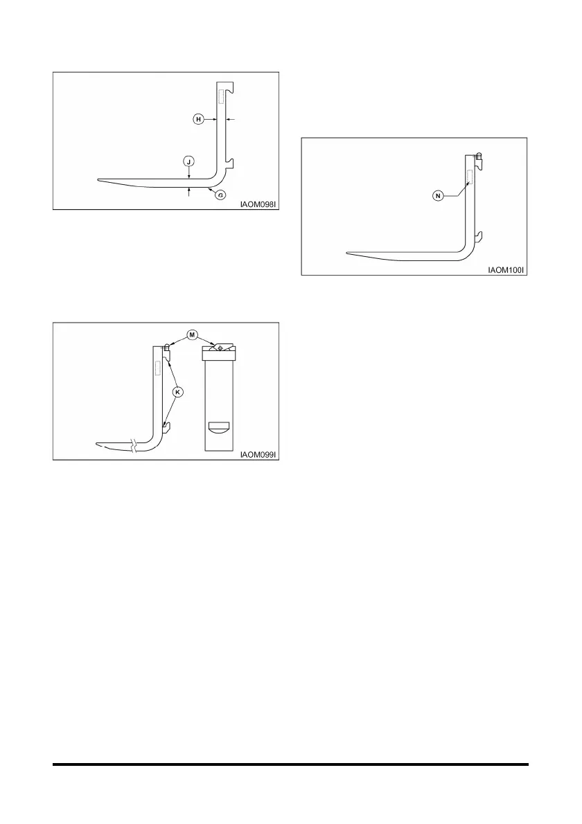 5. Check the fork blade (J) and shank (H) for wear with