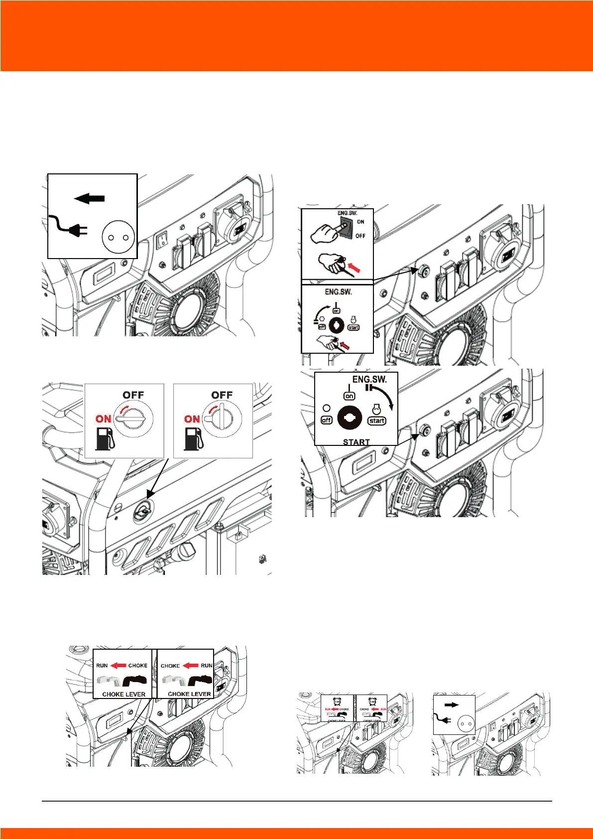 b. For the manual start generator by pulling the recoil