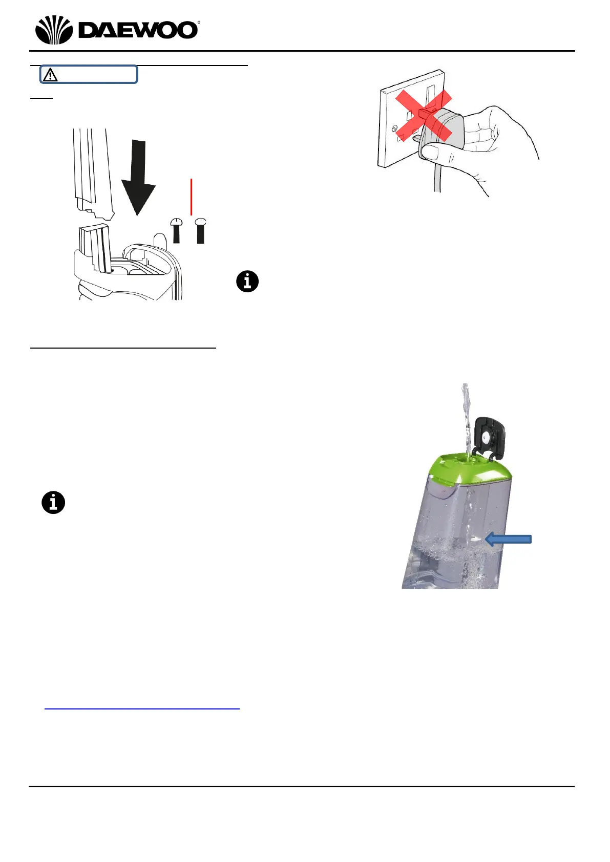 WARNING! Ensure that the carpet cleaner is