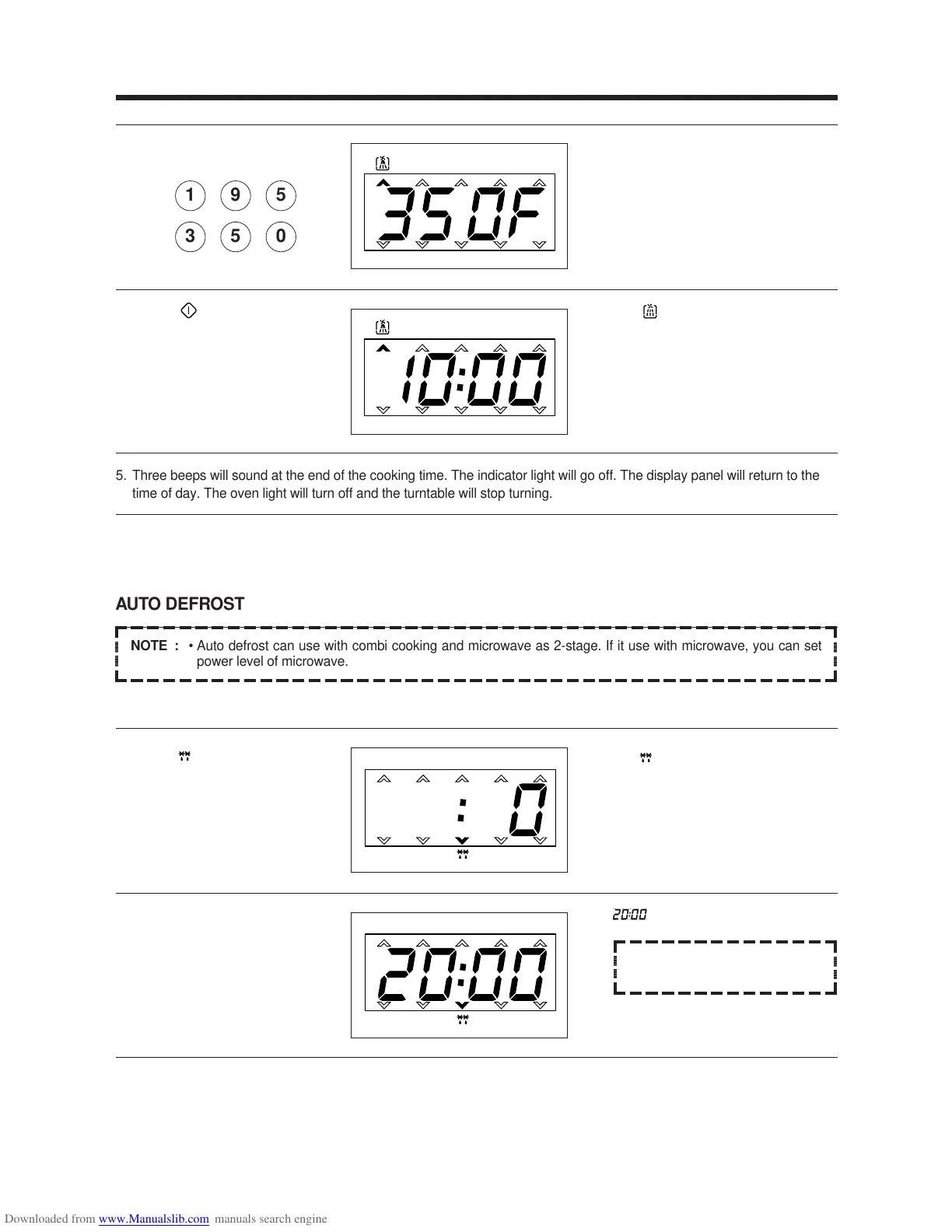 NOTE : • Auto defrost can use with combi cooking and microwave as 2-stage. If it use with microwave, you can set