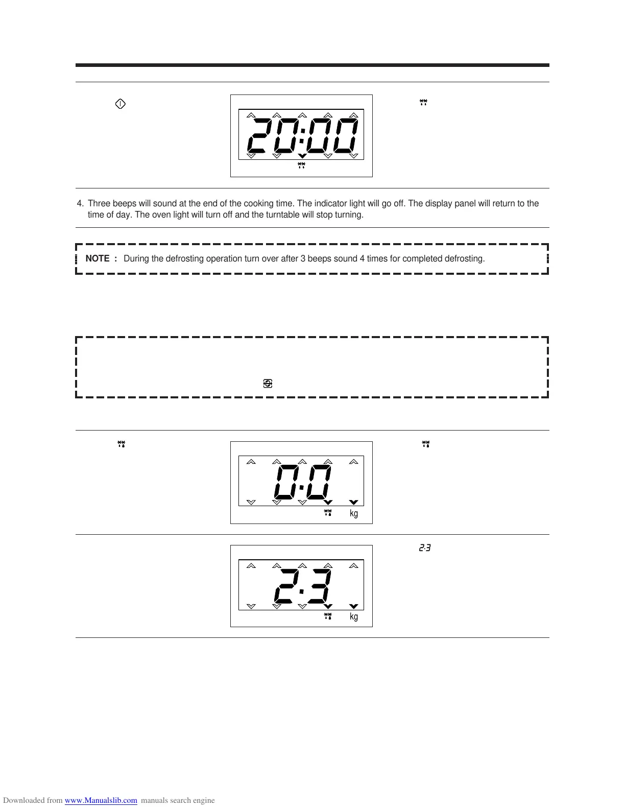NOTE : During the defrosting operation turn over after 3 beeps sound 4 times for completed defrosting.