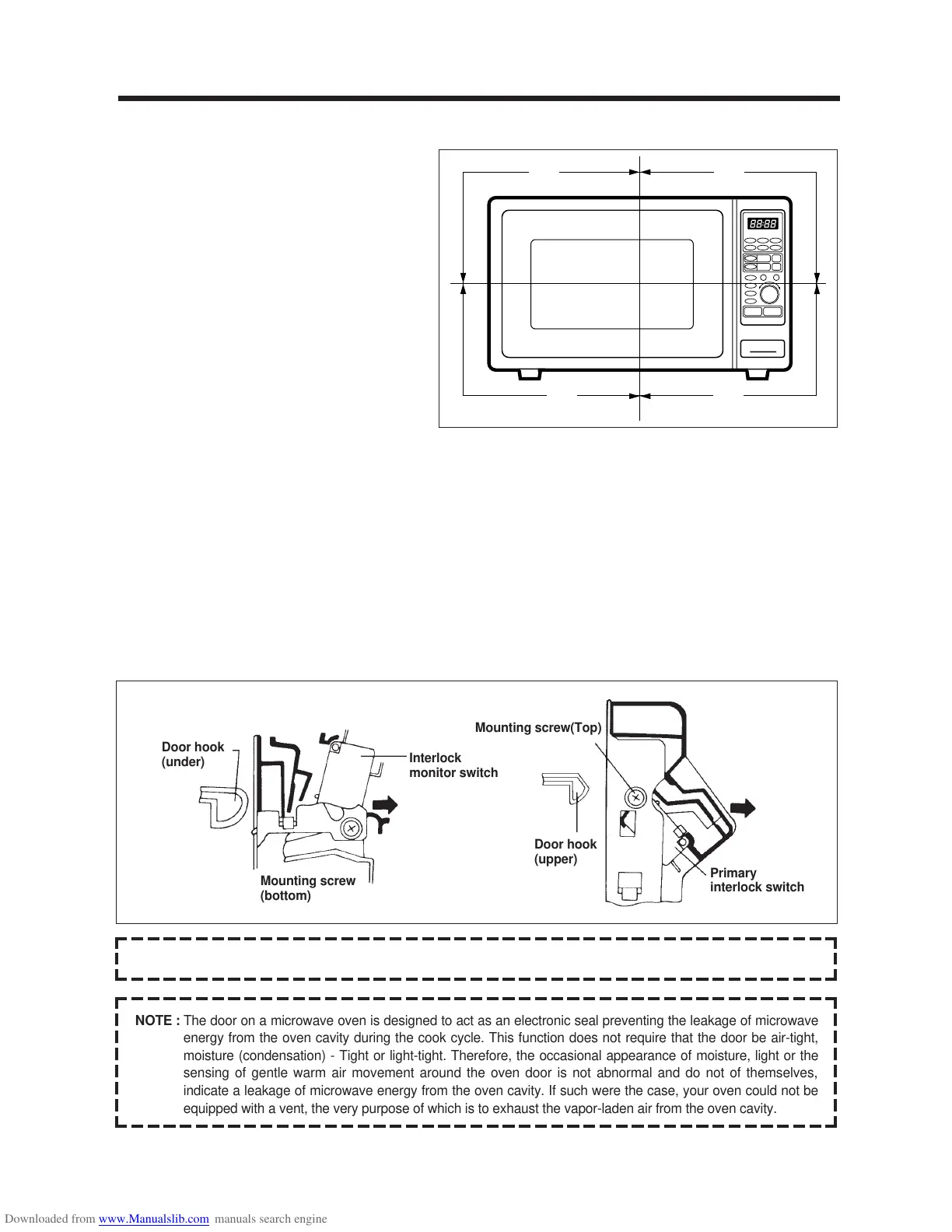 NOTE : The door on a microwave oven is designed to act as an electronic seal preventing the leakage of microwave