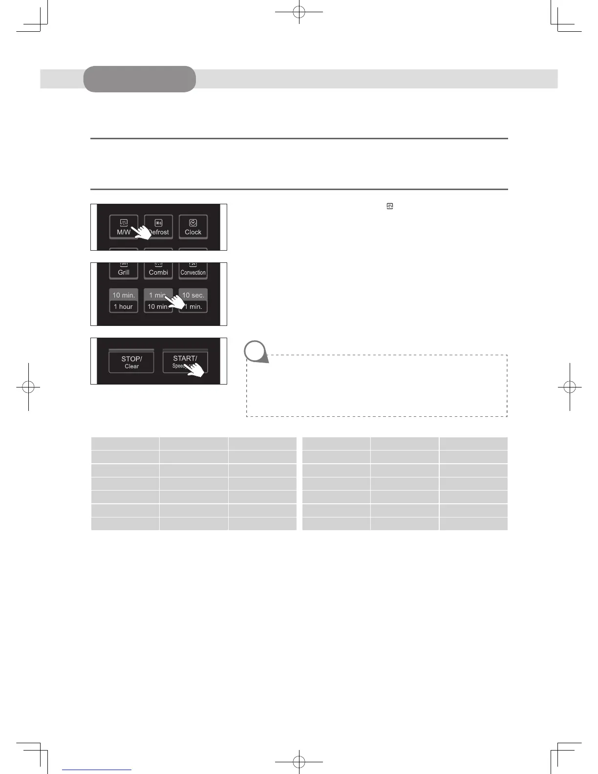 This microwave cooking method allows you to cook food for a desired time. In addition to the maximum power level(100%),