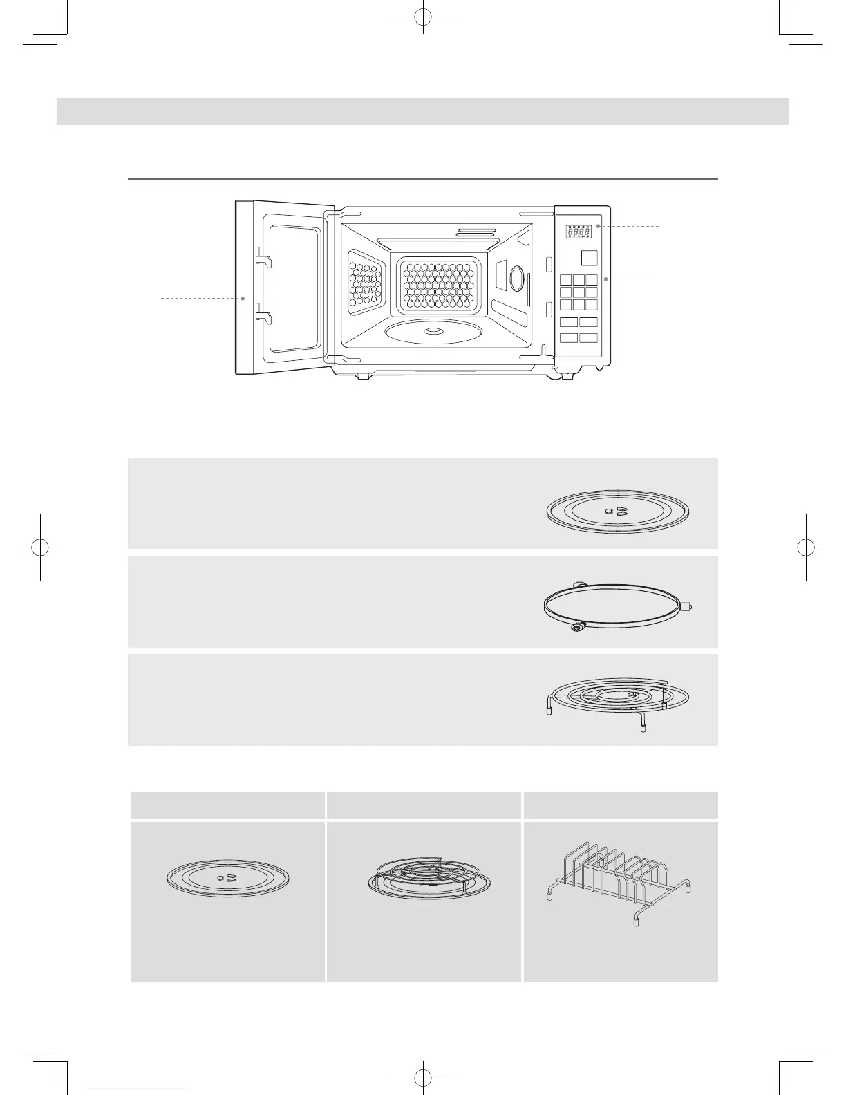 3. Metal Rack - Centre the rack on the glass tray when using the grill cooking,