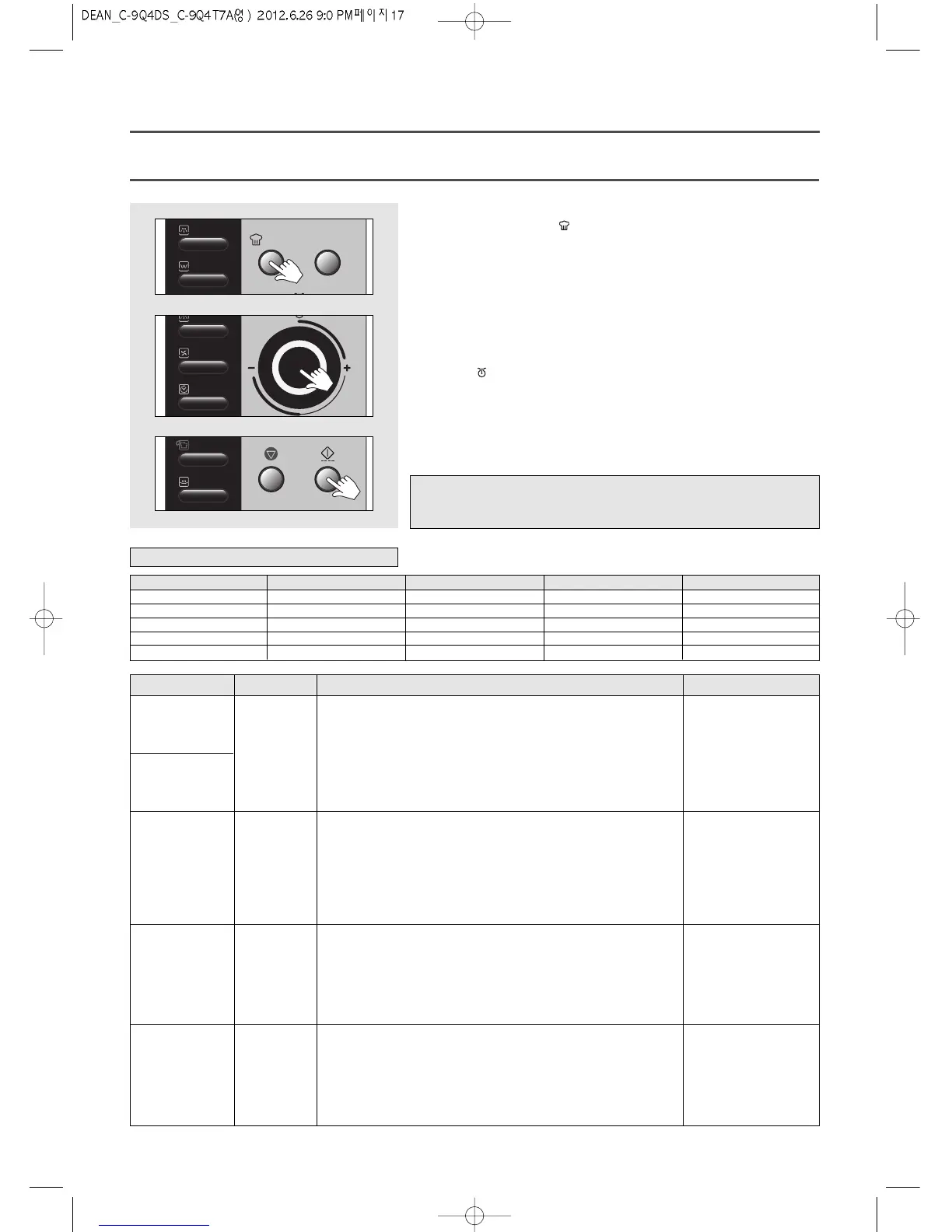 Refer to the auto cook menu chart below for further details.