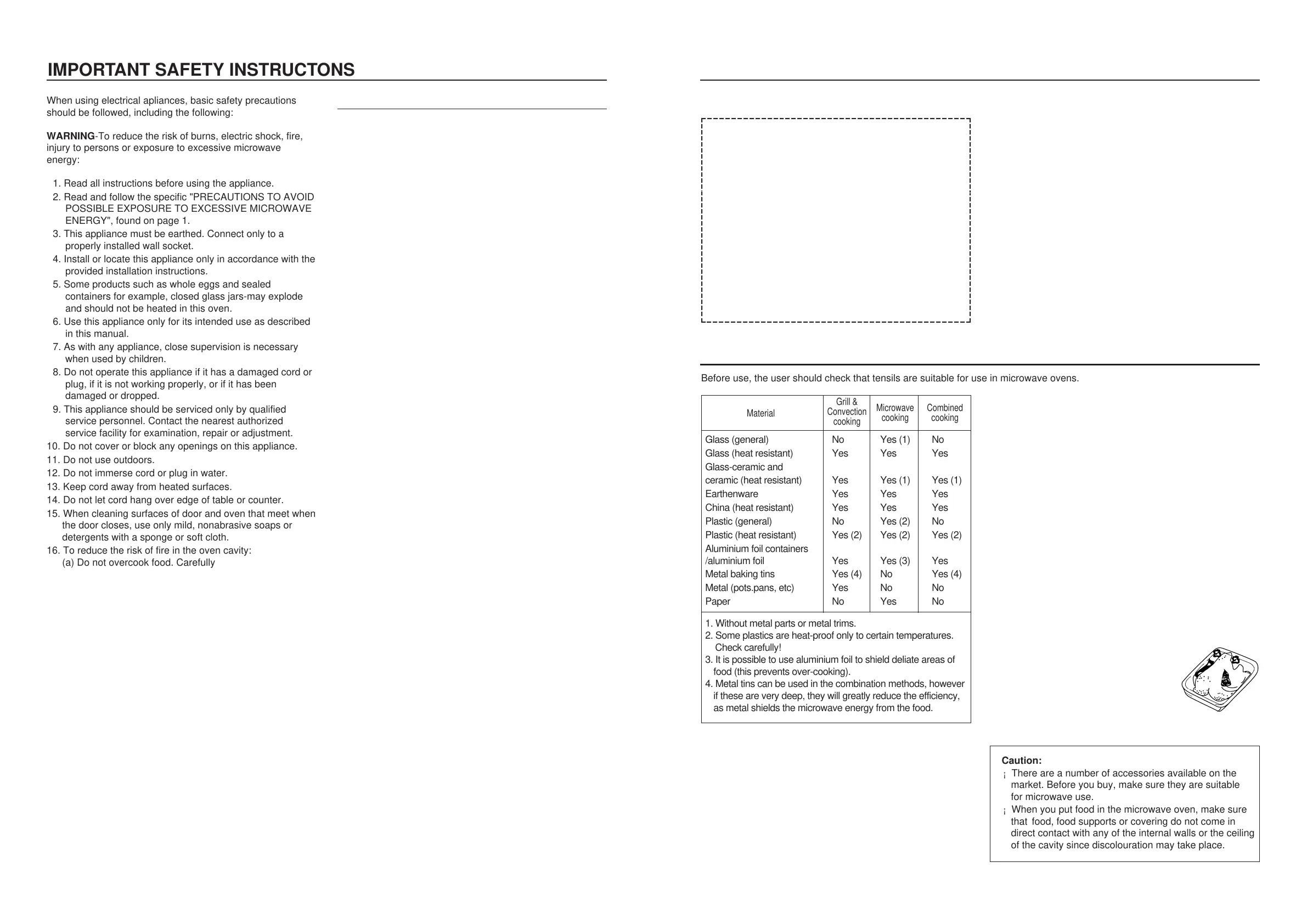Plastic (heat resistant) Yes (2) Yes (2) Yes (2)