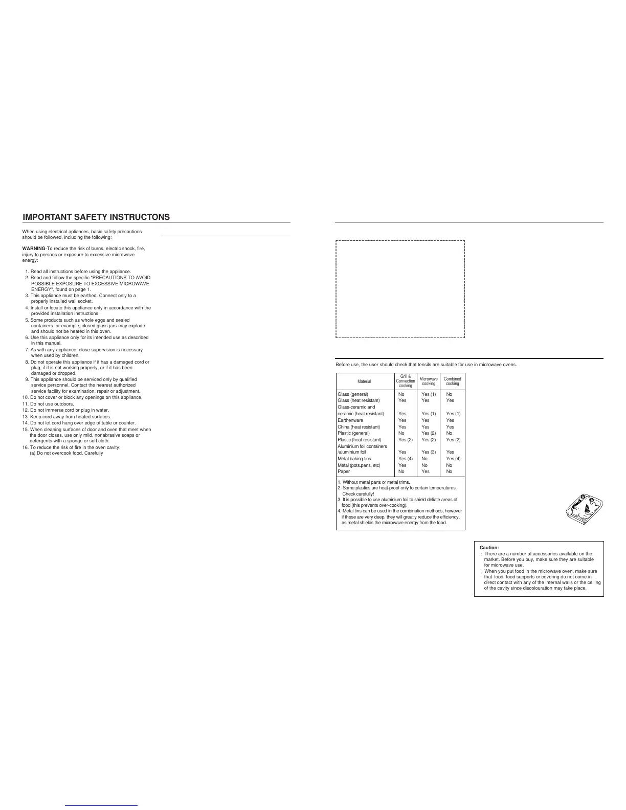 Plastic (heat resistant) Yes (2) Yes (2) Yes (2)