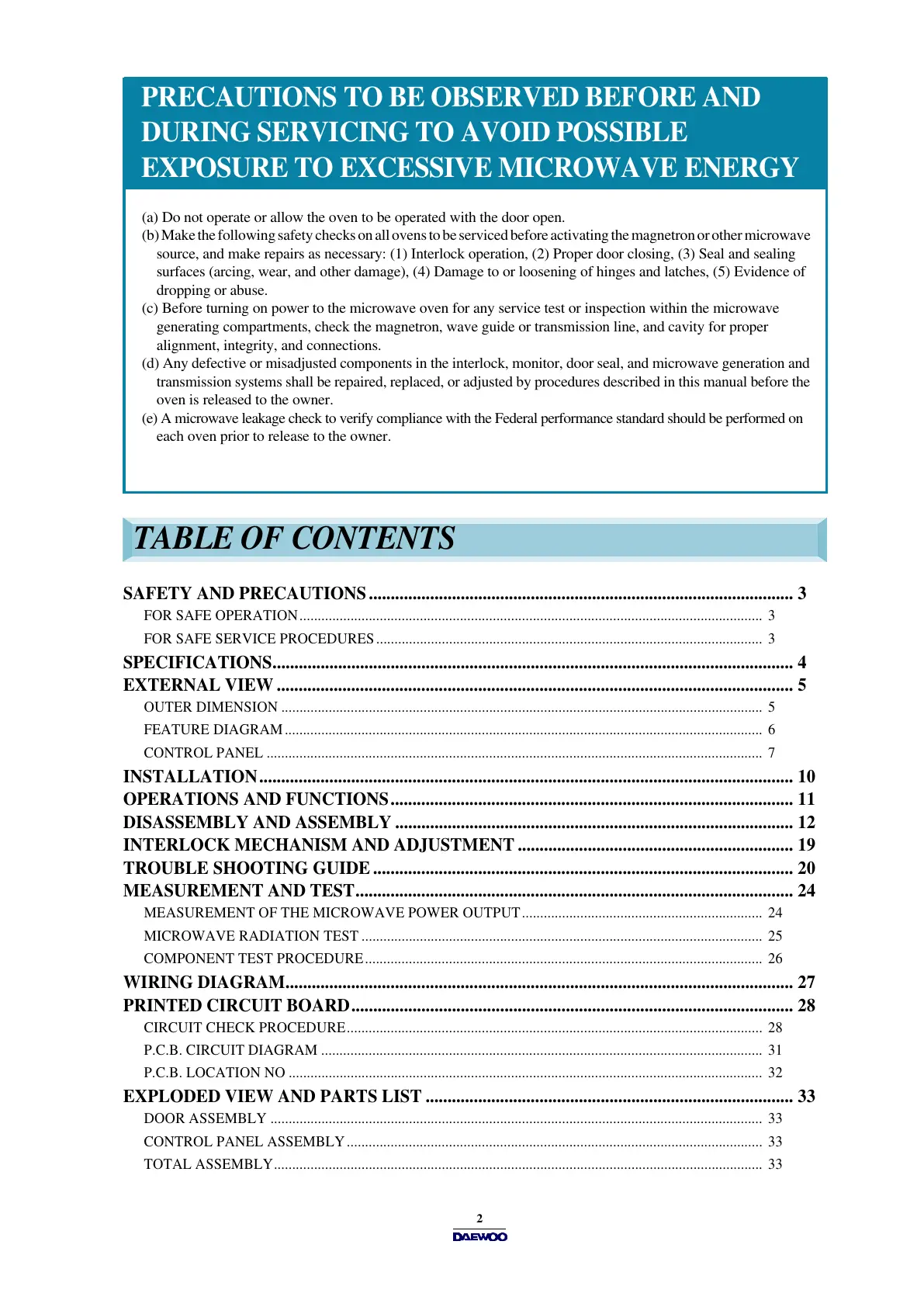 EXPLODED VIEW AND PARTS LIST.................................................................................... 33