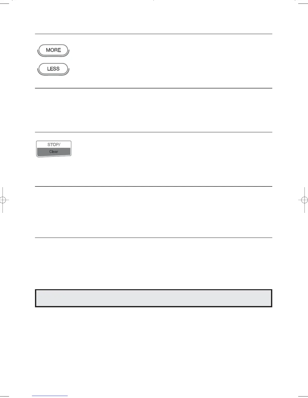 Touch the LESS/MORE pad to decrease/increase the cooking time in multiples of 1 minute.