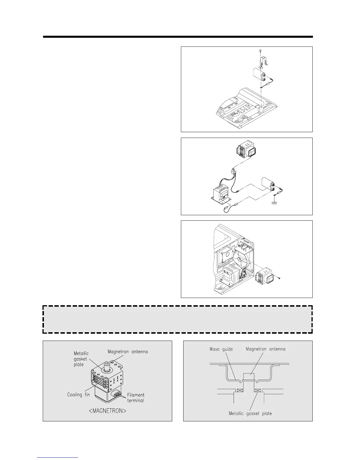 NOTE : Never install the magnetron without the metallic gasket plate which is packed with each magnetron to