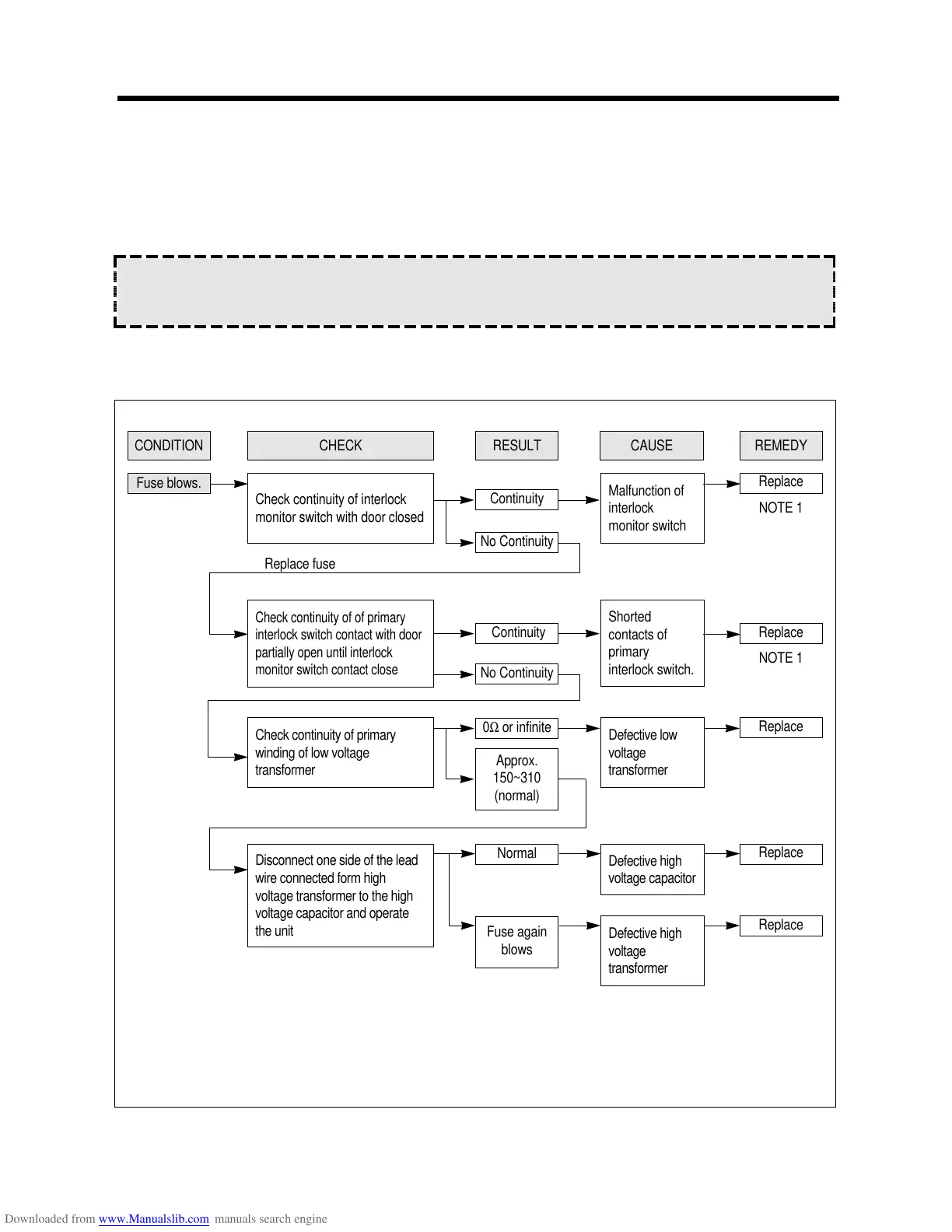 4. When checking the continuity of the switches, fuse or high voltage transformer, disconnect one lead wire from these parts