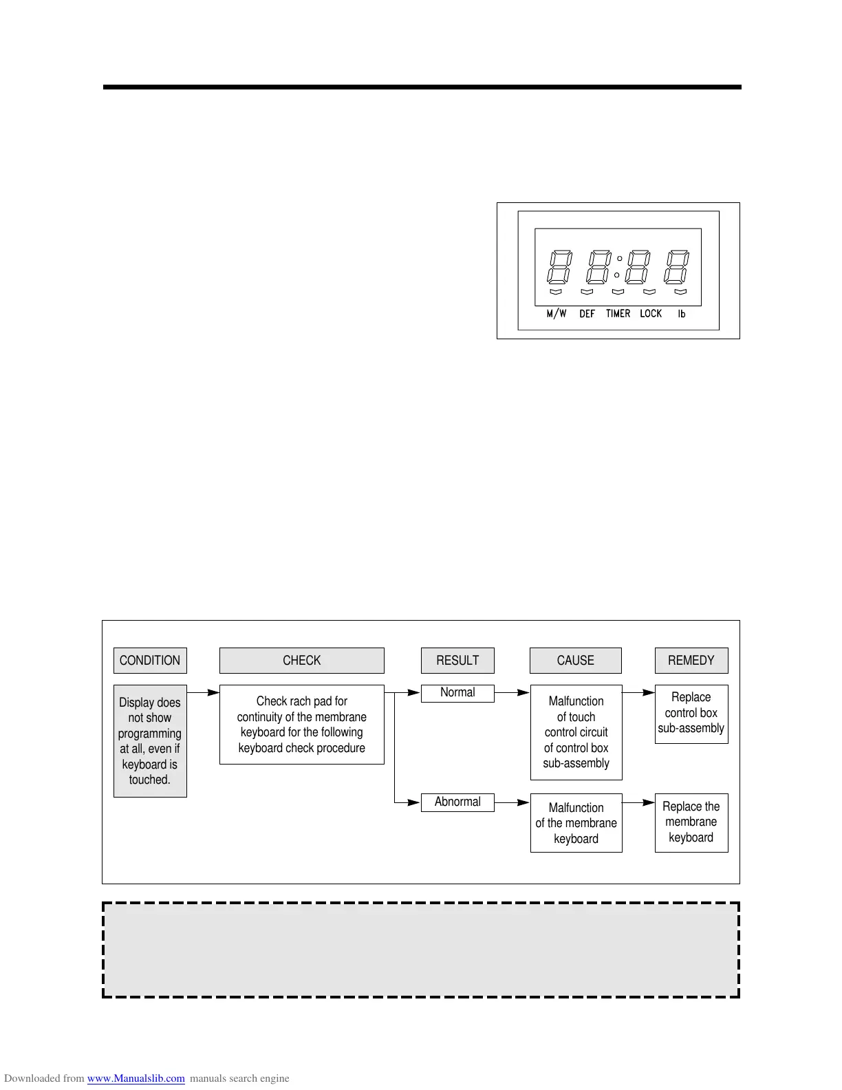 (TROUBLE 4) The following visual conditions indicate a probable defective touch control circuit or membrane switch