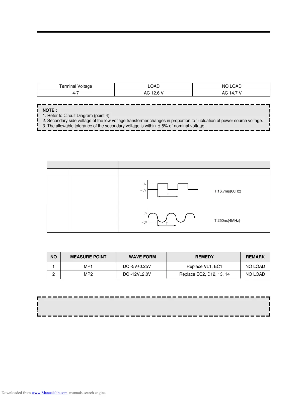 1 MP1 DC -5V±0.25V Replace VL1, EC1 NO LOAD