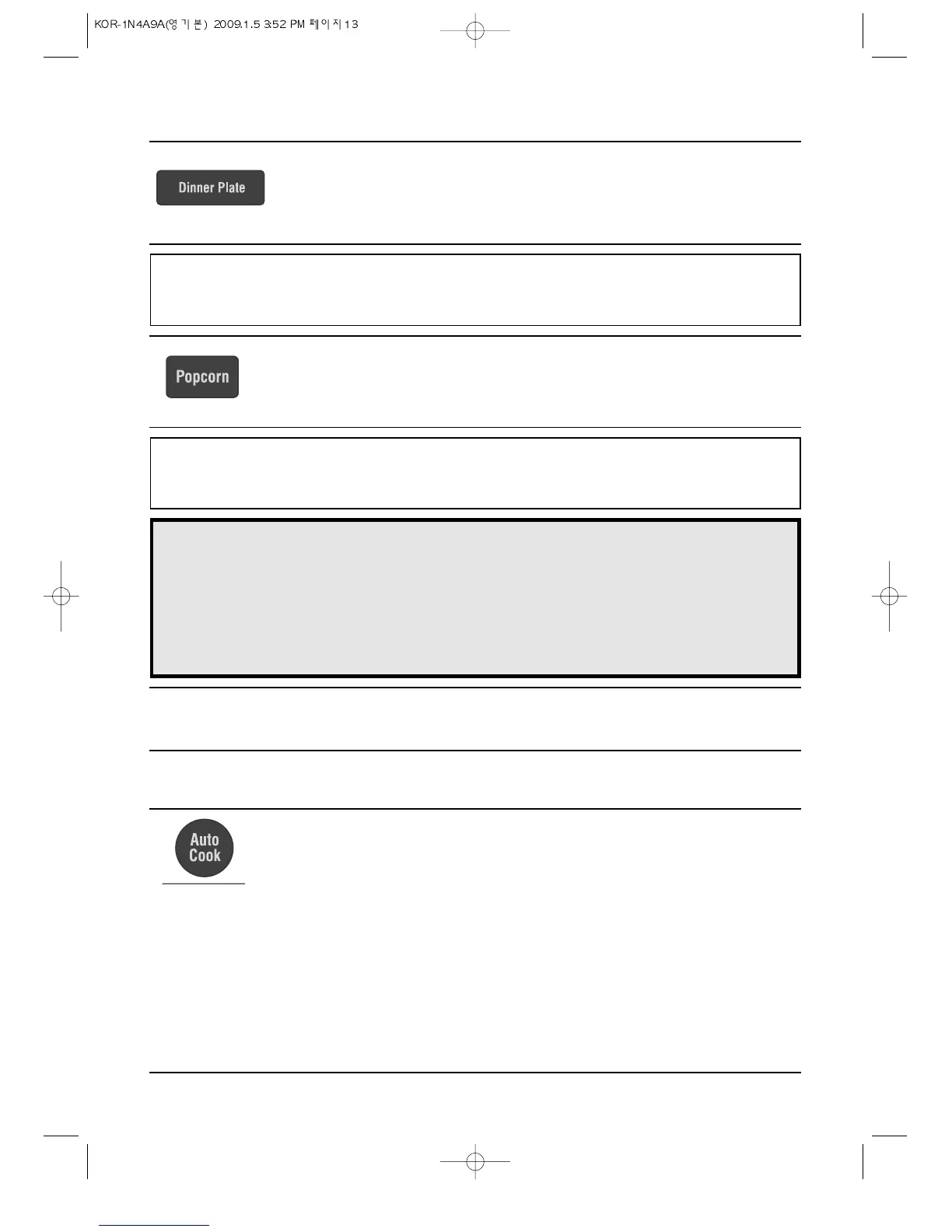 AUTO COOK allows you to cook or reheat many of your favorite foods by repeatedly touching the AUTO COOK pad.