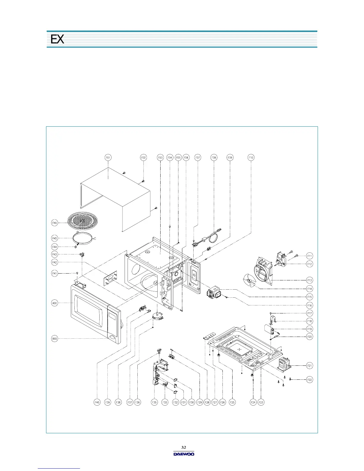 Daewoo KOR-630A0A - Exploded View and Parts List; Door Assembly; Control Panel Assembly; Total Assembly