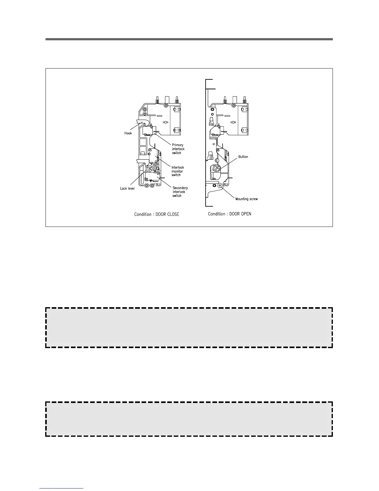 Microwave emission test should be performed after adjusting interlock mechanism. If the microwave smission exceed