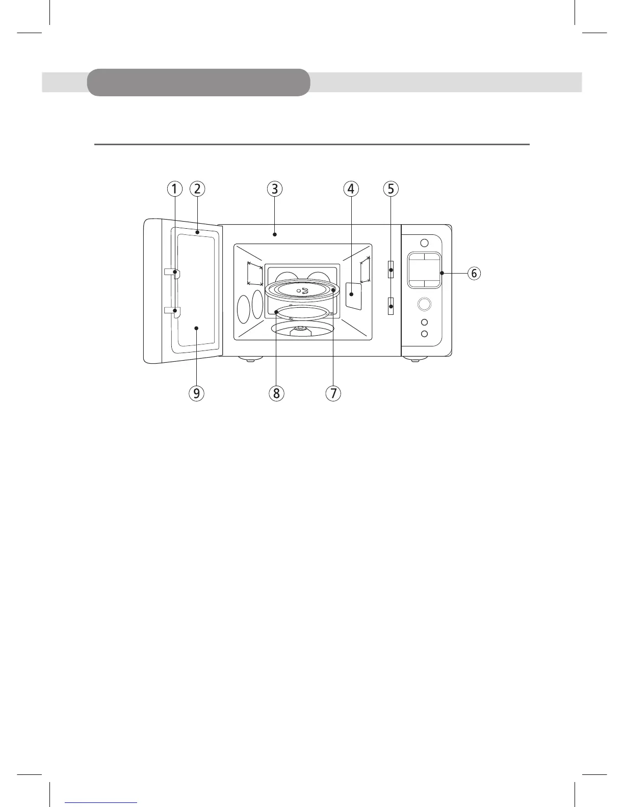 4. Wave guide cover-Protects the microwave outlet from splashes of cooking foods.