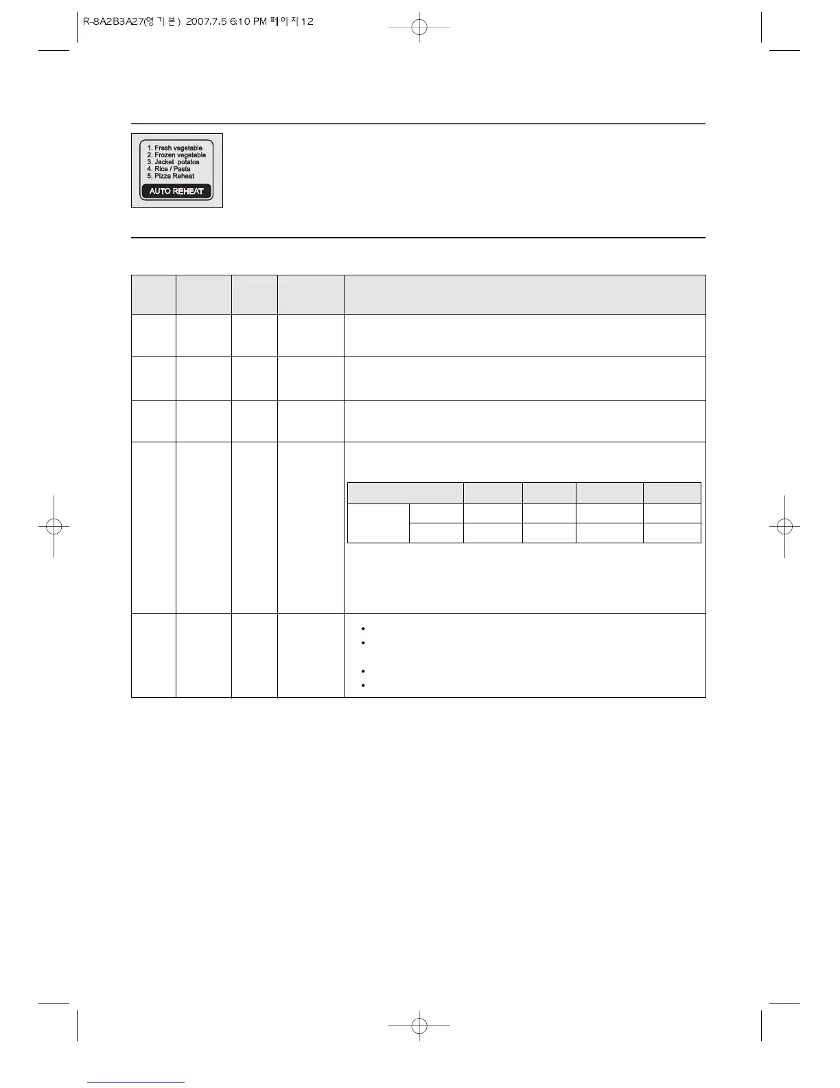 1. Touch the AUTO REHEAT pad to set the item.