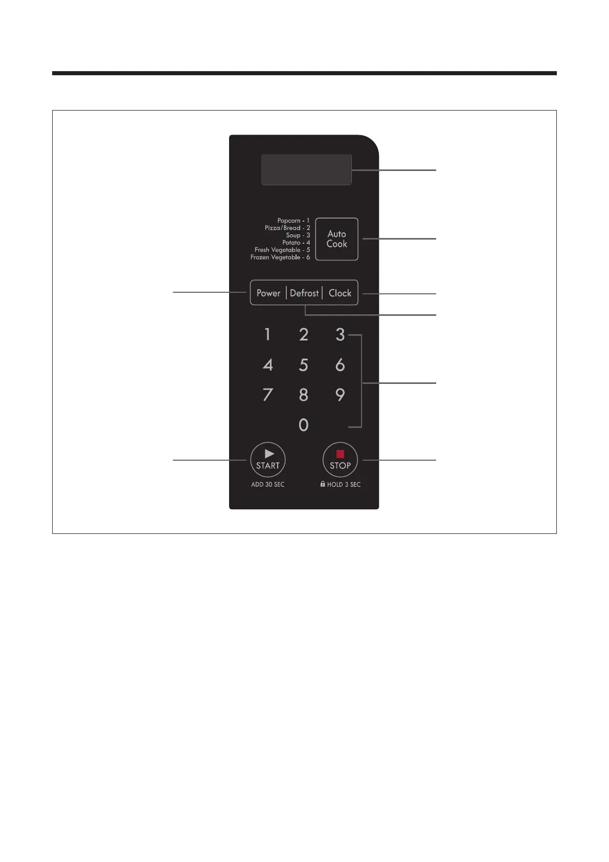 8 START / +30 SEC - Used to start the oven and also used to set a reheat time.