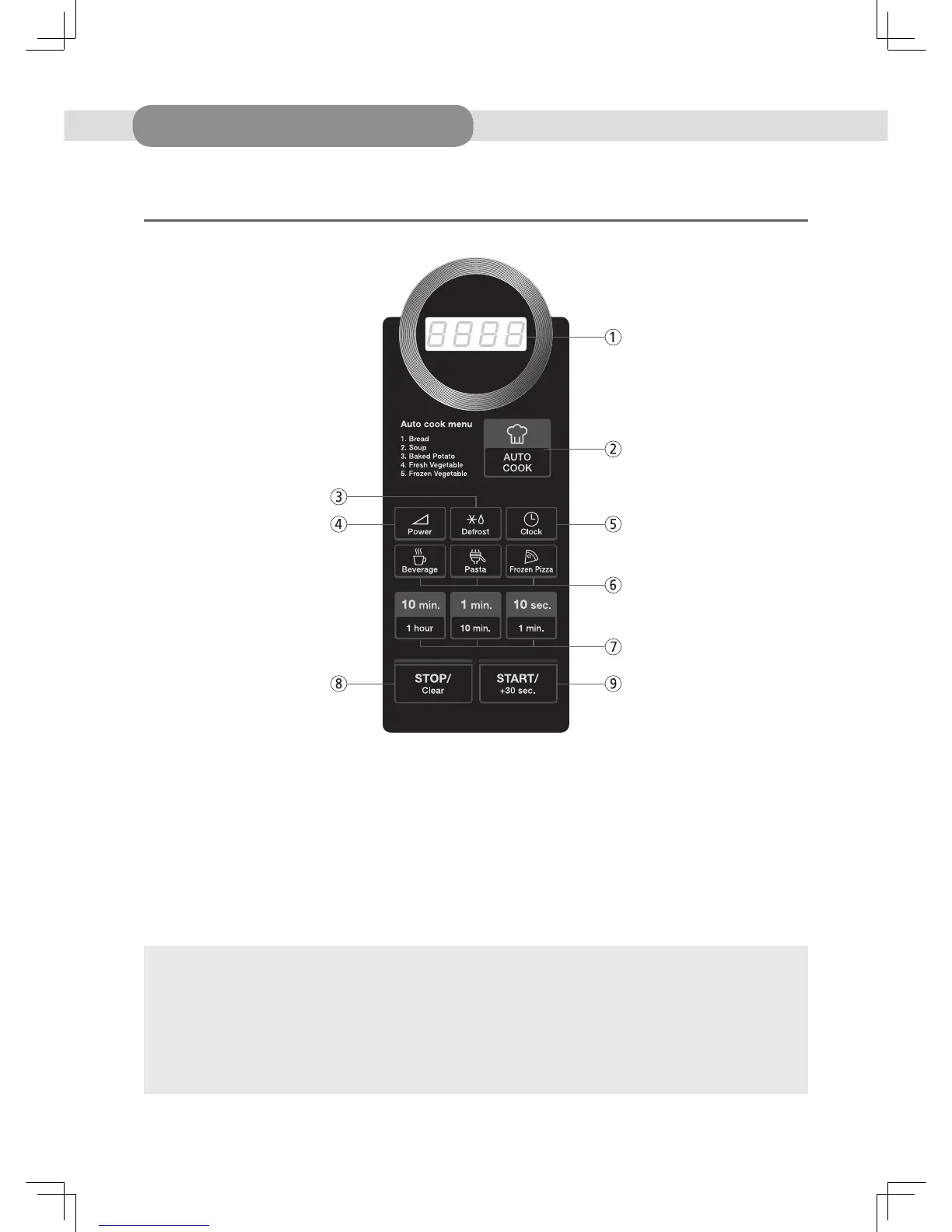 8. STOP/CLEAR - Used to stop the oven operation or to delete the cooking data.