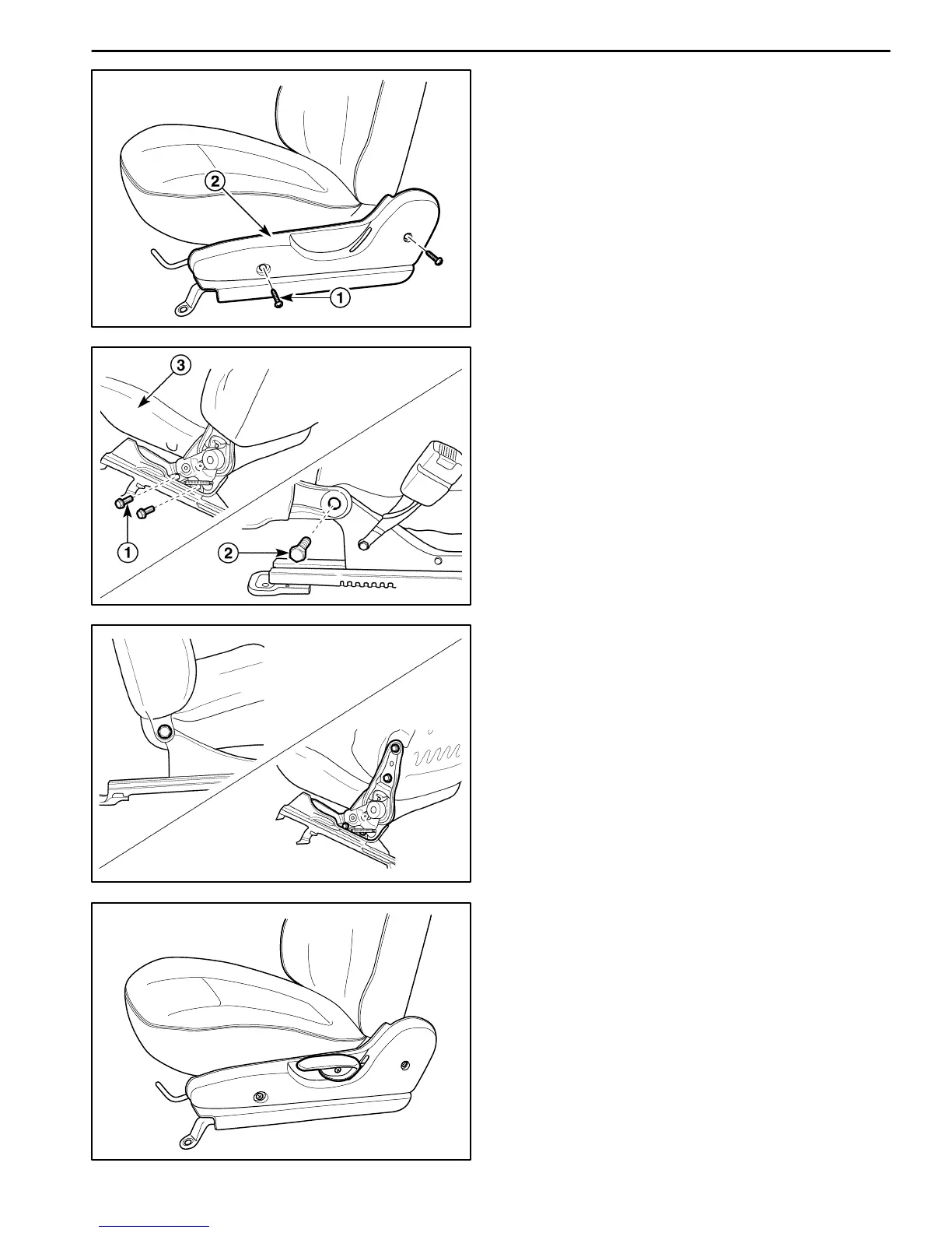 D Remove the seatback bolt (2).