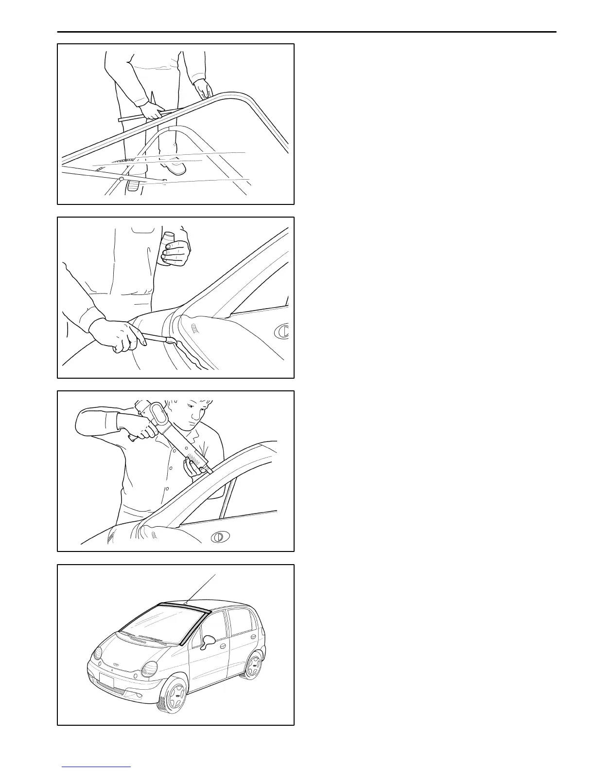 1. Install the new weatherstrip to the windshield.