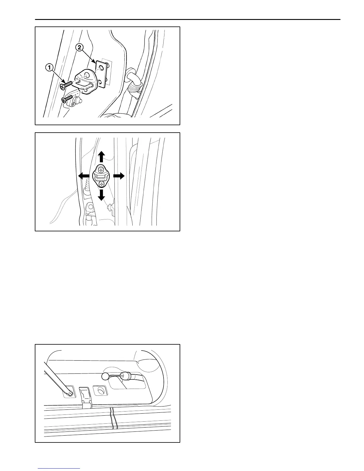 D Remove the striker screws (1).