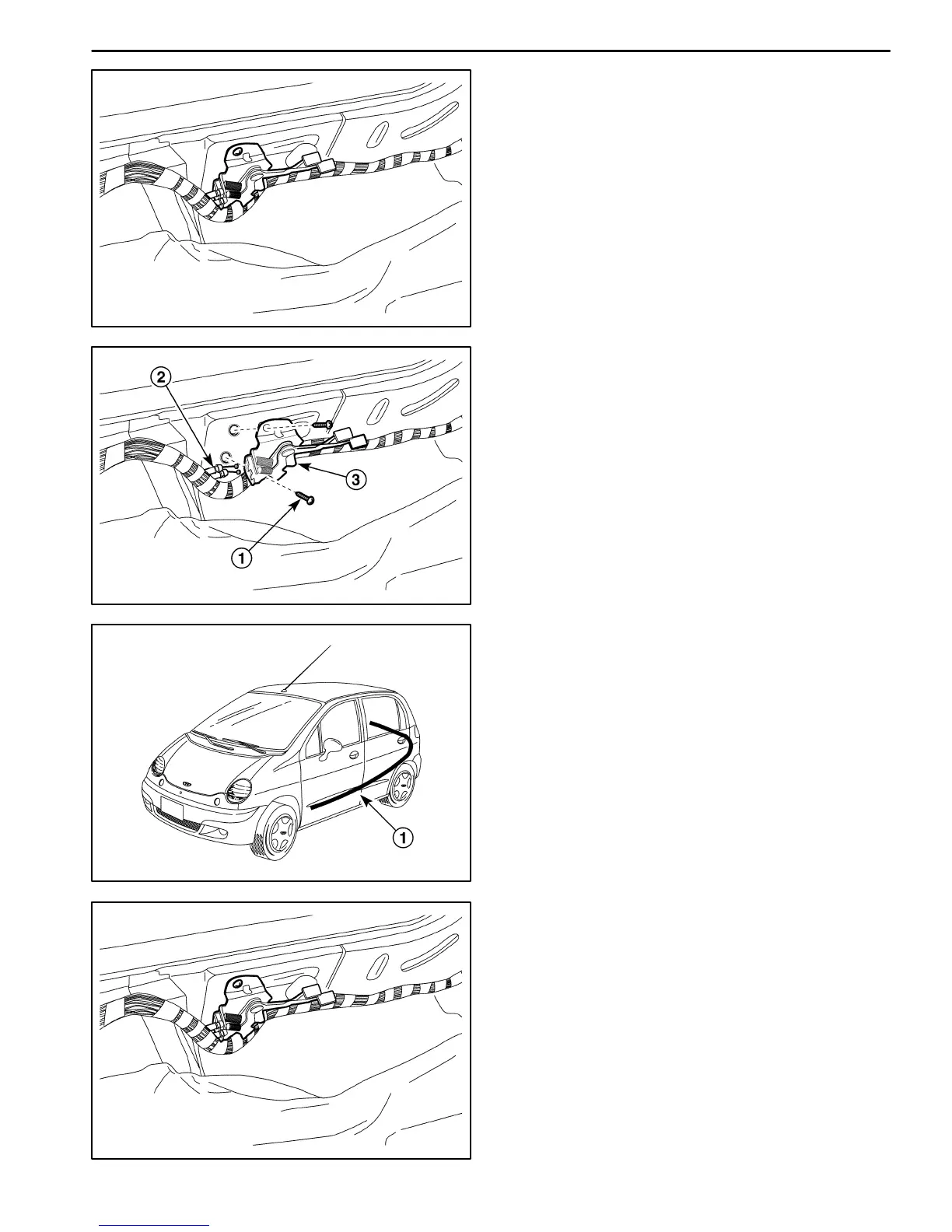 3. Pry off the lower B–pillar trim panel. Refer to Section