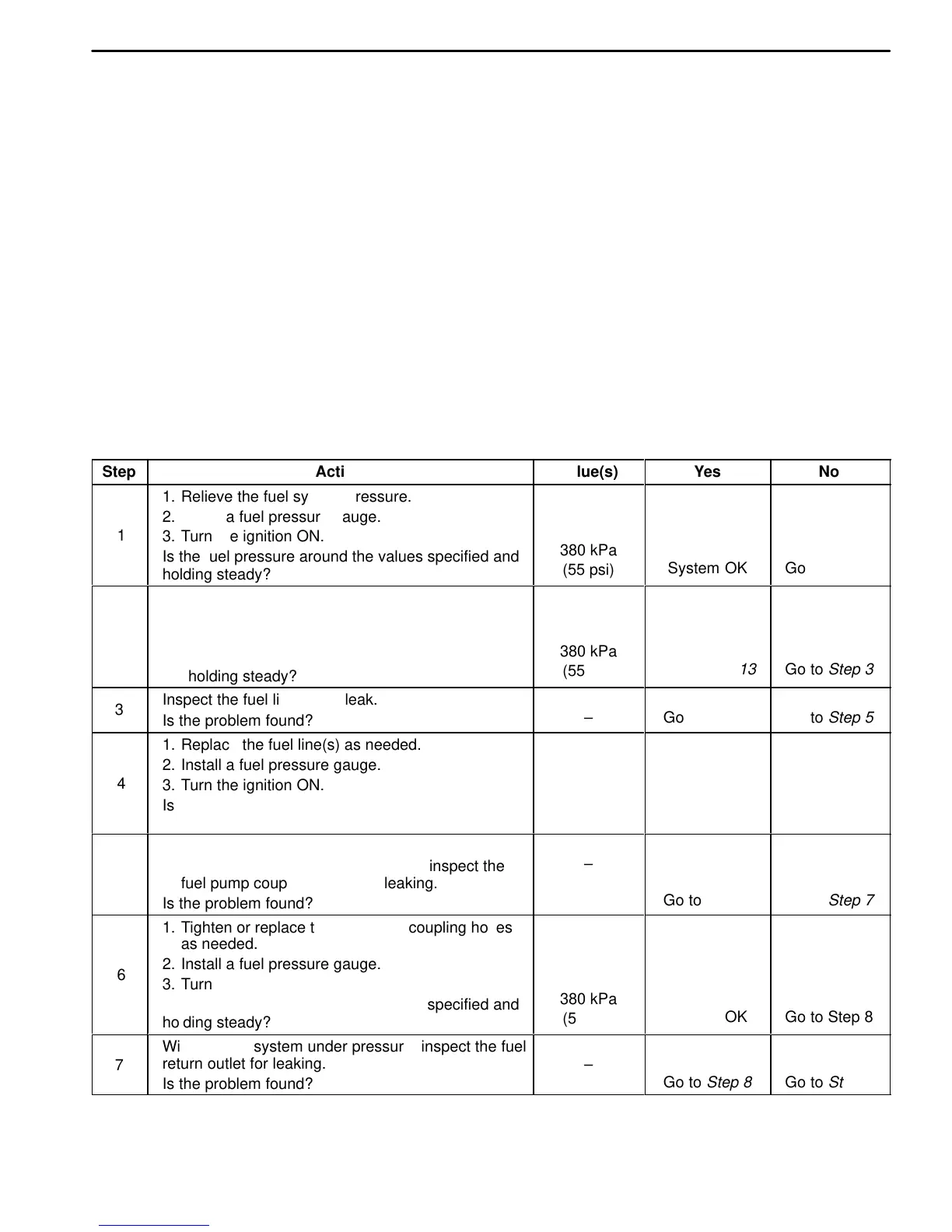 the fuel system pressure is controlled from 380 kPa (55