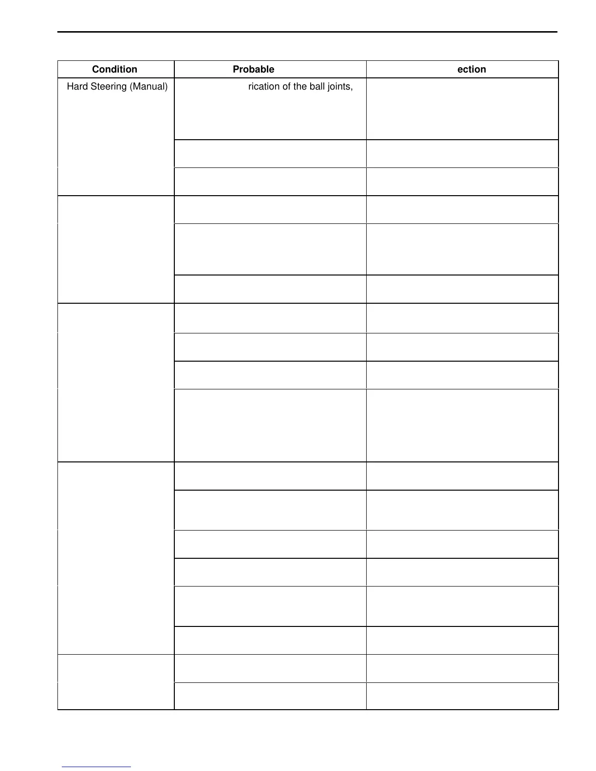 D A loose steering gear mounting. D Tighten the steering gear mounting