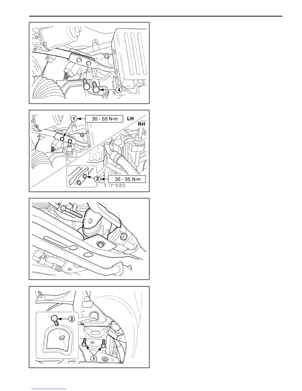 Tighten the strut bar bolts to 35–55 NSm (25–41 lb-ft).