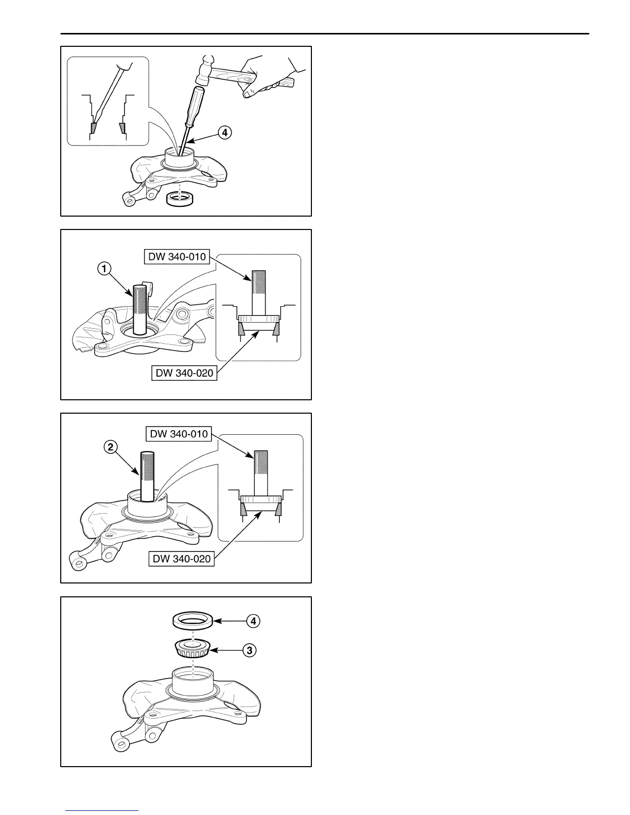 D Assemble the outer wheel bearing oil seal (4).