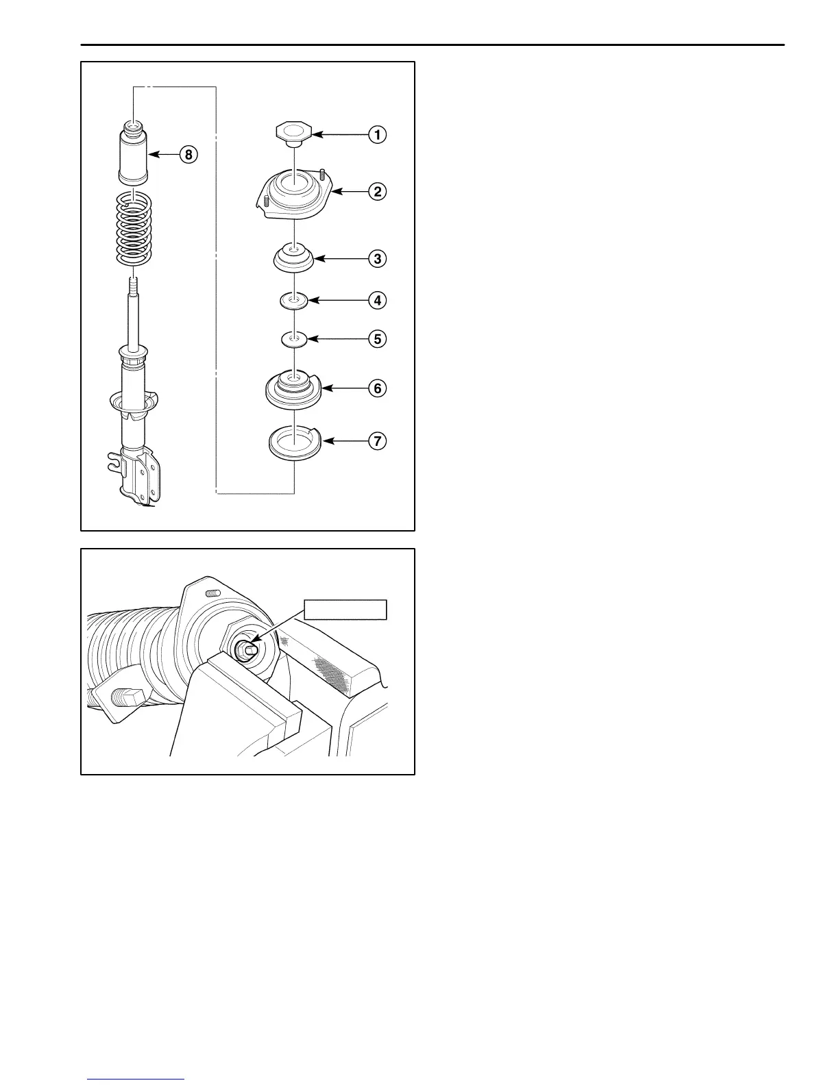D Remove the strut mount assembly (2).