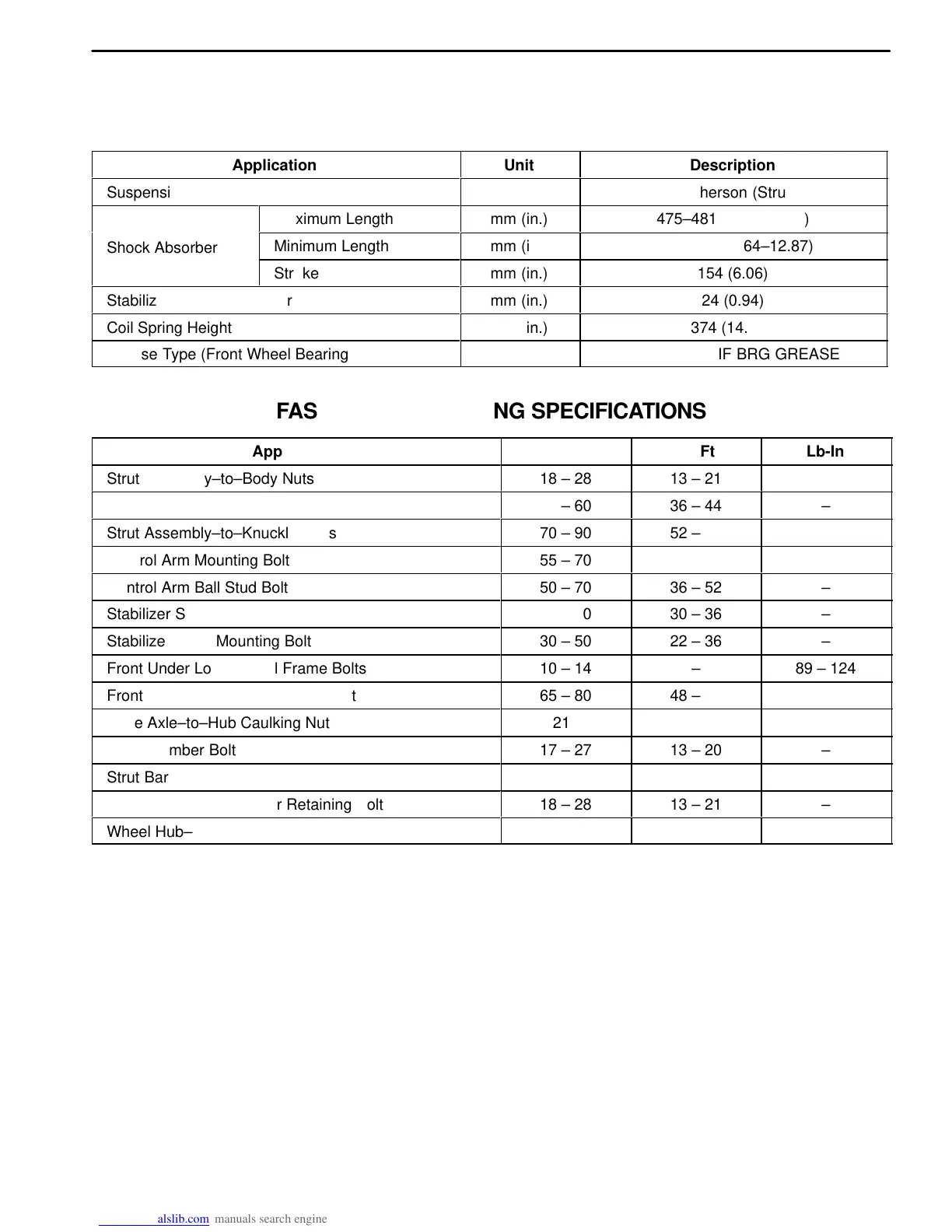 Strut Assembly–to–Knuckle Bolts
