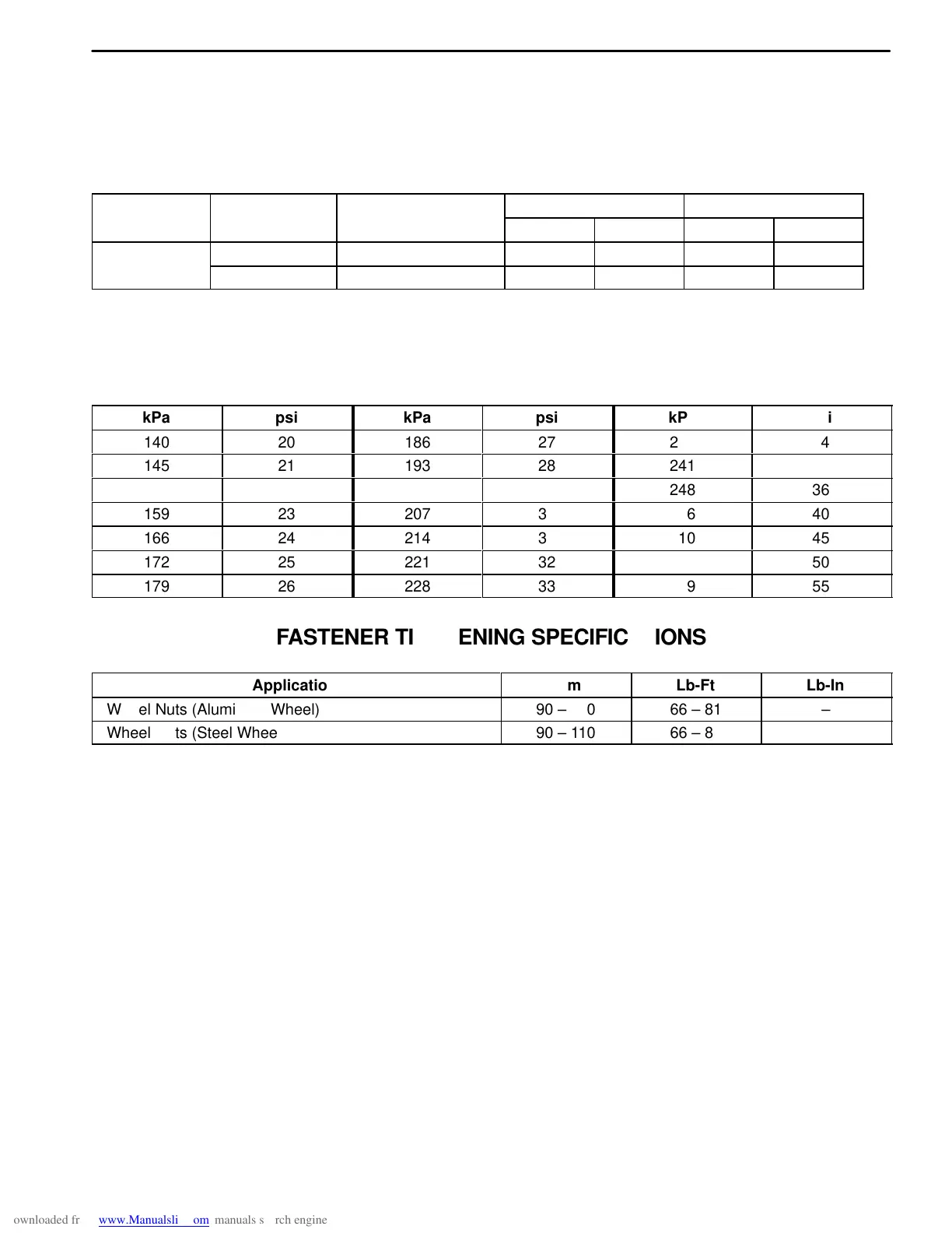 Wheel Nuts (Aluminum Wheel) 90 – 110 66 – 81 –