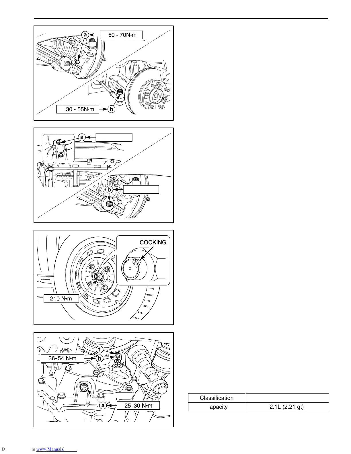Tighten the control arm ball joint bolt to 50–70 NSm