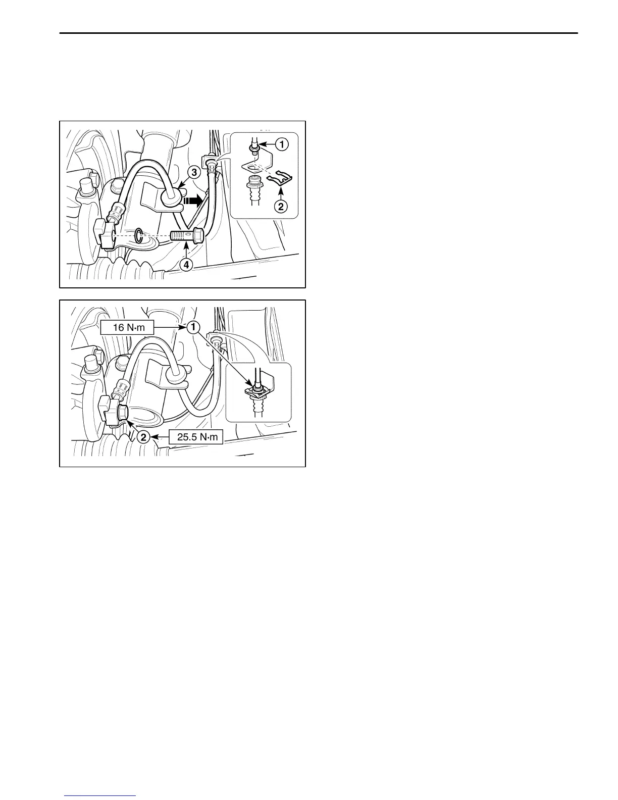 Tighten the brake pipe–to–hose fitting to 16 NSm (12
