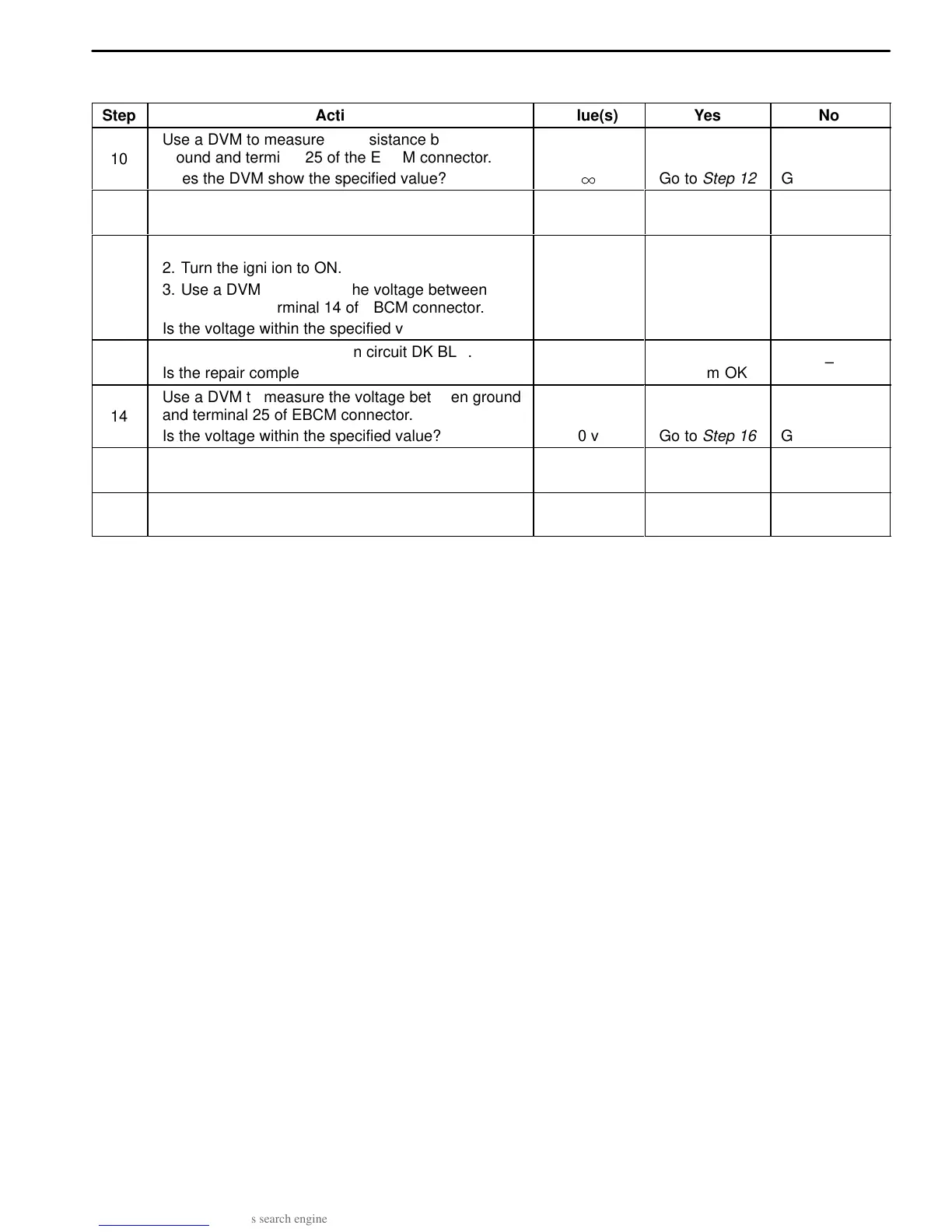 ground and terminal 14 of EBCM connector.