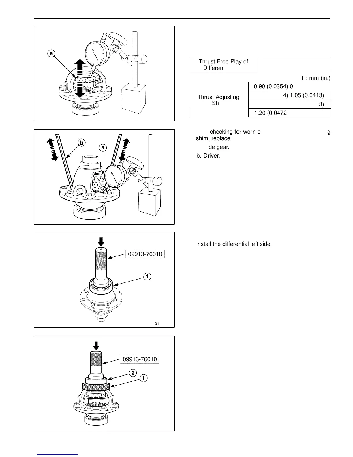 1. Measure the axle direction play of side gear and re-