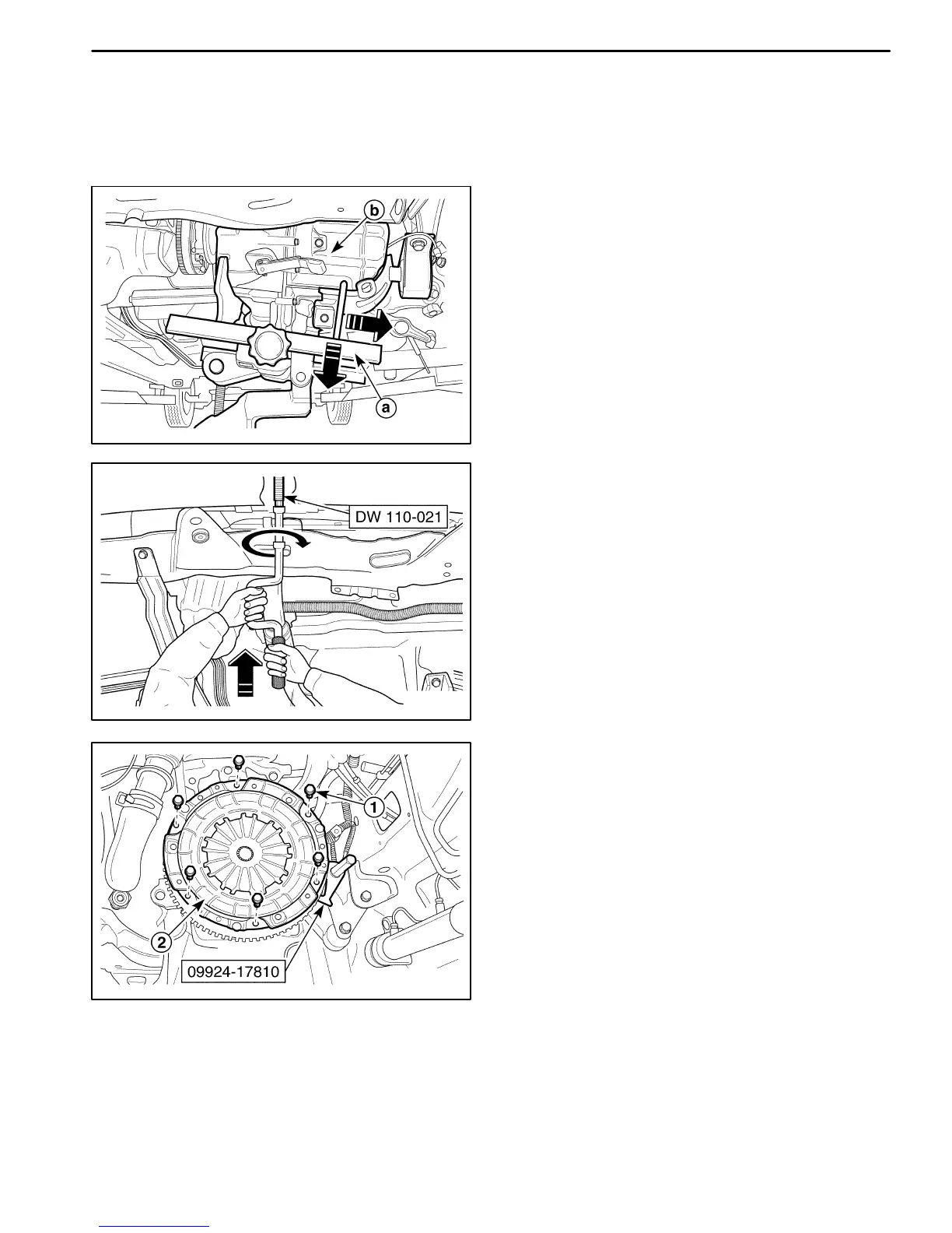 D Remove the pressure plate and the clutch disc (2).