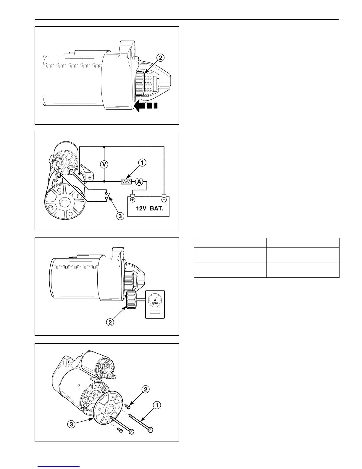 D Start the starter motor with the switch on (3).