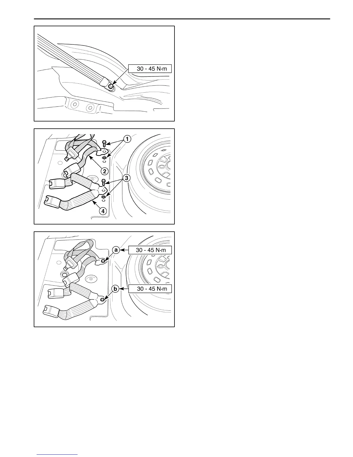 the two–point rear seat belt bolt to 30–45 NSm